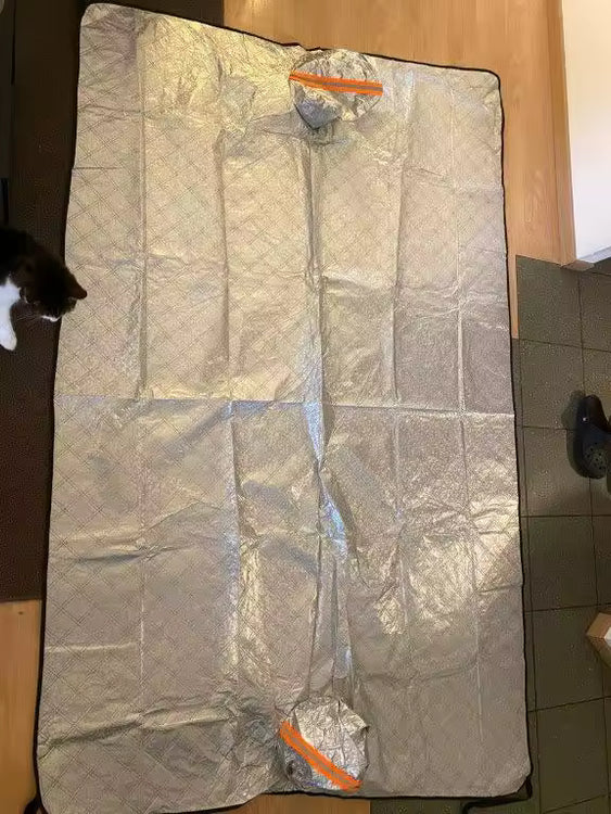 Yes. The reflective outer layer deflects heat, while the waterproof backing blocks moisture, frost, and light precipitation.